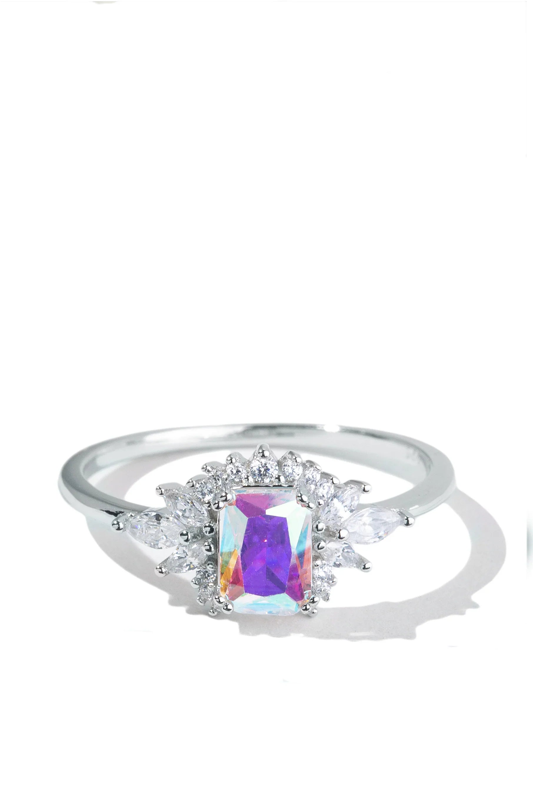 - Design: Iridescent crystal with white side crystals
